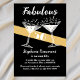 Célébrez avec style avec cette invitation chic de 50e anniversaire pour femmes ! Avec un fond noir, une bande diagonale dorée avec le numéro 50 dans une police vintage, et deux verres à cocktail qui se croisent, surmontés de « Fabulous » en écriture élégante. Les détails de la fête sont faciles à lire dans une police serif classique. Merci de passer - donnez un like à ce design si vous l'aimez !