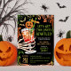Ce design d'invitation à Halloween est idéal pour une fête d'halloween annuelle et/ou un cocktail et costumes avec un cocktail à thème citrouille tenu par une main squelette. Cette conception a une bordure en feuille de vigne citrouille tourbillonnant verte et orange. À l'arrière de l'invitation se trouve un design tourbillon éffrayant avec crânes, chauves-souris et araignées. Vous pouvez customiser tout le texte de cette conception. Voir l'ensemble de la collection correspondante. Toutes les oeuvres sont copyright de Kaitlyn Thomas.