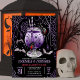 Ce design d'invitation à Halloween est idéal pour une soirée cocktails et costumes, il présente des illustrations dessinées à la main d'un cocktail éffrayant de violet avec des araignées noires de veuve rampant sur tout et des bulles noires menaçantes qui éclatent. Le cocktail a une garniture de toile d'araignée et les bordures de l'invitation sont également des toiles d'araignée, des chauves-souris et des étoiles. Au dos de l'invitation se trouvent des toiles d'araignées violettes. Vous pouvez customiser tout le texte de cette conception. Voir l'ensemble de la collection correspondante. Toutes les oeuvres sont copyright de Kaitlyn Thomas.