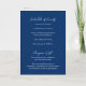 Faire-part de mariage pliée bleu marine moderne avec un design simple et minimal avec le nom de la mariée dans un script élégant et le nom du marié dans une police sans serif contemporaine. Vous trouverez ci-dessous, dans le coin inférieur droit, les détails de votre événement dans un agencement minimaliste. L'intérieur a votre photo préférée et vos détails supplémentaires, y compris un code QR optionnel (si vous préférez, le code QR peut être supprimé dans l'outil d'édition de conception). Le verso comporte deux sections facultatives supplémentaires pour plus d'informations.