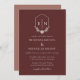 Monogramme botanique Faire-part de mariage Bourgogne. Le devant a un beau monogramme fleuri et verdoyant avec une formulation d'invitation formelle