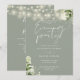 Cette élégante invitation de soirée de mariage avec lumières de chaîne florales botaniques vert sauge comprenant de jolies lumières de chaîne et de la verdure florale, peut être personnalisée avec vos informations en typographie chic avec les détails de votre site web de mariage et votre code QR au verso. Conçue par Thisisnotme