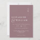 Cette invitation de mariage à monogramme minimaliste mauve peut être personnalisée avec vos informations et le code QR de votre site web de mariage en typographie moderne. Conçu par Thisisnotme©