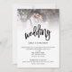 Code QR de photo de mariage avec écriture artistique moderne. Un design typographique tendance avec un ensemble d'écriture stylé pour un mariage avec un motif de cœur superposé partiellement sur votre photo préférée en haut. Le reste du texte peut être facilement personnalisé. Remplacez simplement l'image exemple au recto par la vôtre, ainsi que le code QR exemple au verso par un code menant à votre propre site web, afin que vos invités puissent facilement trouver plus de détails et répondre sans avoir besoin de cartes séparées pour les détails et la réponse.