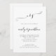 Faire-part de mariage Code QR Script Élégant Noir et Blanc ou de n'importe quelle couleur. Avec un code QR renvoyant vers votre site web de mariage au verso pour que vos invités puissent répondre et voir tous les détails en ligne sans avoir besoin d'insertions séparées. Votre code QR sera généré automatiquement pour mettre à jour l'exemple de code dans le design, lorsque vous changerez simplement l'URL d'exemple dans le modèle avec l'URL de votre propre site web de mariage. Un design entièrement personnalisable avec vos initiales en haut dans un script élégant avec fioritures. Personnalisez facilement le texte, vous pouvez également cliquer sur "Modifier plus" pour changer les couleurs du texte et du fond si vous le souhaitez.