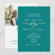 Adoptez l'élégance moderne avec notre invitation de mariage formelle sarcelle tout-en-un. Caractérisée par une calligraphie stylée et un cœur de corde dorée subtil, cette invitation dégage de la sophistication. Personnalisez-la avec une photo du couple et incluez un code QR pour un RSVP sans effort et un accès à votre site web de mariage. Définissez le ton de votre journée spéciale avec ce design minimaliste, où chaque détail reflète la beauté de votre histoire d'amour.