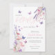 Cette jolie et élégante invitation de baby shower présente des fleurs sauvages et des papillons et peut être personnalisée avec vos détails dans une typographie élégante. Le verso présente votre photo spéciale et un code QR de registre. Conçu par Thisisnotme©