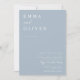 Cette invitation présente une police de caractères typographiques sérif bloc simple et propre et une calligraphie sur un fond bleu poussiéreux. La simplicité et la conception épurée de cette invitation fonctionnent bien avec tous les thèmes de mariage et constituent certainement un excellent ajout à votre mariage. Il suffit de personnaliser les noms et le texte en quelques étapes faciles et de personnaliser la carte d'invitation avec votre photo du couple heureux et de remplacer le code QR par le vôtre au dos de l'invitation pour donner à votre invitation une belle touche personnelle.