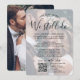 Si des circonstances imprévues ont provoqué le report de votre réception de mariage, le premier anniversaire est une occasion parfaite pour célébrer un an plus tard. Invitez famille et amis à une fête élégante et simple pour le 1er anniversaire avec une invitation moderne et stylée 2 en 1 avec QR code pour répondre. Tout le texte est facile à personnaliser, y compris la citation qui dit "un an plus tard, nous sommes toujours ensemble". Personnalisez-la pour n'importe quelle période entre la cérémonie de mariage et la fête d'anniversaire, qu'il s'agisse de quelques mois ou de plusieurs années. Incluez toutes les informations de votre choix, telles que la date du mariage, les plans de renouvellement de vœux, les détails de la fête post-fuite, le lieu de la cérémonie de mariage suivante, le code vestimentaire, etc. (CONSEIL DE PLACEMENT D'IMAGE : Un moyen facile de centrer une photo exactement comme vous le souhaitez est de la rogner avant de la télécharger sur le site Web de Zazzle.) En scannant le QR code avec leur téléphone, les invités sont envoyés directement sur le site Web du mariage pour répondre à l'invitation. Un processus de RSVP en ligne réduit les risques que les cartes se perdent dans le courrier. C'est également plus polyvalent, car vous pouvez demander des informations plus détaillées