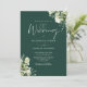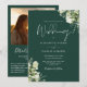 Cette élégante invitation de mariage florale de verdure verte émeraude peut être personnalisée avec vos informations en typographie chic avec votre photo spéciale, les détails de votre site web de mariage et votre code QR au verso. Conçu par Thisisnotme©
