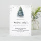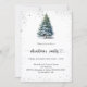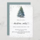 Invitations hivernales pour une fête de Noël. Un arrière - plan blanc à l'avant décoré d'un pin dessiné à la main couleur de l'eau avec de la neige et une parties scintillant étincelante. Personnalisez et ajoutez les détails de votre fête. Retour : arrière - plan bleu-vert. Ajoutez l'URL de votre site Web au code QR pour les détails RSVP et/ou du parti.