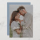 Dusty Blue Budget Elegant tout en un Faire-part de mariage comprend des détails et des informations complets sur le mariage, y compris le site du mariage, QR Code, photo recouverte de texte, et un monogramme ou des initiales pour la mariée et le marié.