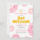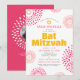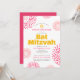 Soyez fiers, réjouissez-vous et mettez en valeur ce jalon de votre Bat Mitzvah préférée avec cette invitation QR code personnalisée, amusante, tendance et funky ! Des éclats de fleurs rétro pop rose chaud et corail avec des étoiles de David, ainsi qu'une typographie sans serif moderne jaune, rose chaud et gris foncé, se superposent sur un fond blanc propre. Au verso, la photo de votre choix, un éclat de fleur blanc et un code QR scannable pour plus d'informations se superposent sur un fond corail rose chaud. Personnalisez le texte personnalisé avec le nom de votre Bat Mitzvah, la date, les informations sur le lieu, l'URL du site web et la photo. Garantie pour ajouter une touche de style amusant à son occasion spéciale !