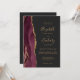 Le bord gauche de cette élégante invitation de mariage moderne présente une bordure d'agate aquarelle bordeaux rehaussée de paillettes dorées fausses. Le texte personnalisable combine une écriture dorée manuscrite et des polices copperplate et italique sur un fond gris charbon foncé. Le verso offre un espace pour les détails du mariage sur un fond sombre uni, ainsi qu'un code QR que les invités peuvent scanner pour visiter votre site web et répondre, ce qui permet d'économiser le coût d'impression et d'envoi de cartes de réponse séparées.