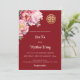 Cet élégant faire-part de mariage chinois présente des pivoines aquarelles et un double symbole de bonheur doré sur un arrière - plan rouge foncé. Noms de mariée et de mariée dans un élégant script manuscrit. Invitation à la cérémonie chinoise de faire-part de mariage ou de thé. À l'arrière se trouvent les détails et un code qr scannable pour votre site mariage.