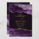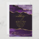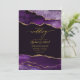 Cette superbe faire-part de mariage violette et or présente un design luxueux inspiré des agates, avec des accents dorés chatoyants et une typographie raffinée. L'envers comprend un code QR pratique pour que les clients puissent accéder à des détails mariages supplémentaires. Parfait pour les mariages modernes et sophistiqués.