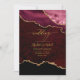 Ce luxueux faire-part de mariage bordeaux et doré présente un design riche d'inspiration agate, avec des accents dorés chatoyants et une typographie élégante. Au verso, vous trouverez un code QR qui vous permettra d'accéder facilement à d'autres détails mariages. Parfait pour des célébrations modernes et sophistiquées.