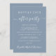 Un salon bleu poussiéreux moderne ou un faire-part mariage privé et une réception de mariage ou une invitation à la fête. "Happily Ever After Party" est écrit dans un mélange de typographie blanche simple et d'un script blanc élégant avec des swashes. Personnalisez votre faire-part de mariage et votre invitation à la réception et ajoutez vos noms dans un script signature. Au verso, entrez l'adresse URL de votre site Web mariage pour créer un code QR pour que les invités puissent scanner tous les détails et à RSVP en ligne, et ajoutez vos prénoms et vos dates de mariage et de réception.