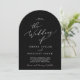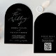 Cette délicate faire-part de mariage en arc de cercle noir QR code noir foncé est parfaite pour un mariage moderne. Le design moody présente une belle et élégante typographie blanche sur un arrière - plan noir au look sophistiqué. Économisez du papier en incluant un code QR pour votre invité afin d'afficher les détails, RSVP ou les deux.