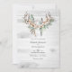 Boules de coton rougeâtre et de soie rougeâtre roux et faire-part de mariage bohème feuille eucalyptus avec plumes de sauce et cornes. Idéal pour un thème ou un mariage de jardin. Le code QR au verso dirige vers votre site mariage où les gens peuvent en savoir plus et rsvp.