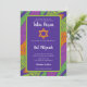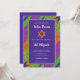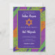 Démarquez-vous avec cette invitation unique et amusante pour un Bat Mitzvah rétro. Elle présente un design de fond violet, vert et orange qui peut être repris dans le reste de votre événement. Des décorations de fête aux décorations de table, vos choix sont infinis. Votre fille sera ravie de cette invitation amusante et excitante pour son jour spécial.