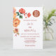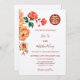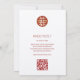 Fleurs de pivoines rouges, oranges et jaunes avec un arrière - plan blanc. Faire-part de mariage chinoise avec un double symbole de bonheur en or. Modifiez le code qr à l'arrière en ajoutant votre URL de votre site Web mariage.