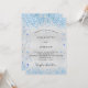 Arrière - plan à l'aspect argent faux décoré de petits coeurs bleus. Personnalisez et ajoutez vos noms et les détails du mariage. Lettres de couleur noire. Retour : ajoutez l'URL de votre site Web mariage au code QR pour plus d'informations et l'inscription RSVP. Cette invitation est également disponible dans notre magasin sans le code QR au verso