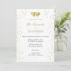 Gold Confetti Hearts Faire-part de mariage. Famille Invitation et amis à votre journée spéciale avec cette carte de mariage élégante, conçue avec des coeurs dorés et des accents confettis sur un arrière - plan blanc. Le texte comprend : Les noms complets de l'épouse et de la pièce, la date du Mariage, l'heure, l'emplacement et les détails de la réception sur le devant. Le revers est décoré de coeurs confettis dorés sur un arrière - plan blanc. Pour personnaliser, insérez simplement vos détails dans notre modèle facile, en remplaçant l'exemple de texte.
