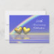 50e invitation anniversaire d'or avec un arc-en-ciel et deux coeurs d'or flottant sur l'eau bleue. Customisez l'exemple de texte au verso avec vos propres informations pour votre événement.