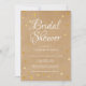 Conçu pour coordonner avec nos coeurs d'or collection de douche à confetti nuptiale. Doté d'une élégante Fête des mariées en écriture, les coeurs dorés sont éparpillés autour de vos détails personnalisés en texte blanc sur un arrière - plan kraft rustique sur cette invitation chic à la douche nuptiale. L'inverse est composé de coeurs dorés supplémentaires éparpillés sur un arrière - plan kraft rustique.