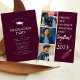 'Friends who Graduate Together, PARTY Together! ' - Ce design moderne est parfait pour les amis qui célèbrent leurs réalisations ensemble en organisant une fête de remise de diplômes conjointe. Le design offre la possibilité de télécharger 3 photos carrés. Le bloc bordeaux peut être changé en n'importe quelle couleur pour représenter votre école et un goût pour symboliser une casquette de graduation. L'inverse a un modèle de fête personnalisable pour vous permettre d'ajouter tous les détails de votre événement.