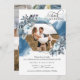 Magnifique carte de Faire-part de mariage virtuelle avec quatre photos, élégantes taches d'aquarelle bleue cascade derrière cadre photo géométrique avec des détails exquis de fleurs bleues et de feuillage. Utilisation de détails de calligraphie écrits à la main modernes. Sur le dos trois collages photo avec cadre élégant petit avec vos initiales joignant les trois photos ensemble. Une partie de notre collection "Rustic Blue Mountains" avec une variété de produits de coordination disponibles.