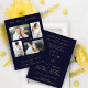 Luxury Collage Wedding 4 photos Navy Blue Trendy Invitation Card with Envelope.