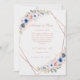 Invitation de mariage moderne florale et géométrique. Dans les couleurs rose doré, pêche et bleu. Cette carte est pour le cas où votre date de mariage est reportée. Entrez vos données, via "personnaliser davantage" vous pouvez déterminer la police, la position, etc. individuellement.