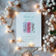 A cheerful pastel Christmas invitation featuring the word “JOY” in a bold patchwork-style design with candy stripes, bows, and holiday tree accents. The mix of pink, teal, and mint brings a playful modern twist to traditional festive colors — perfect for families, office celebrations, or anyone who loves a bright and happy holiday aesthetic.