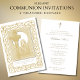 Célébrez la joie sacrée de la première sainte communion d’un enfant avec cette invitation révérente et élégante. Le design avant offre une illustration liturgique richement ornée de la Sainte Eucharistie et de la Sainte Vierge Marie avec l'Enfant Jésus, couronnée de symboles sacrés et ornée d'un verset Écriture de l'Évangile de Jean. Un choix très approprié pour les familles désireuses de proclamer le mystère eucharistique avec beauté et solennité. Au fond : Doté d'un délicat crucifix et d'un script traditionnel, cette famille et ses amis invitations de design témoignent du jour le plus béni où une âme reçoit pour la première fois Notre Seigneur, Corps, Sang, Âme et Divinité, dans l'Eucharistie Très Sainte. Convient à un rassemblement solennel et de grâce, cette invitation honore magnifiquement le caractère sacré de l'occasion avec une tradition catholique intemporelle. Customisez avec le nom de votre enfant, les détails de la messe et l’information sur la célébration du déjeuner.