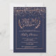 Invitation Communion chic rose de bleu marine de confettis