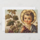 Belle invitation de la première communion catholique avec Jésus tenant des raisins avec l'Eucharistie et Chalice superposés.
