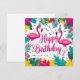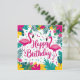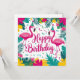 Célébrez dans le style avec notre conception d'anniversaire de fun tropical avec des illustrations de flamant rose ludiques ! Cette œuvre d'art vibrante et pré-conçue apporte une touche de paradis tropical à n'importe quelle fête avec des couleurs vives, des feuilles de palmier et des flamants roses joyeux.