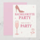 Une conception d'invitation de fête de bachelorette ludique et élégante avec des tons roses, des accents dorés et des icônes de célébration amusantes.