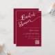 Célébrez la future mariée avec cette invitation chic à la douche de mariée bordeaux, conçue avec un script manuscrit moderne et une typographie élégante. Choix audacieux et intemporel, cette invitation présente des tons rouges riches, un agencement soigné et un espace pour les détails essentiels de l'événement. Comprend un code QR pratique pour le registre des cadeaux ou l'accès RSVP. Parfait pour l'automne, l'hiver ou les thèmes de la douche nuptiale formelle.