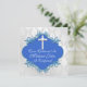 Les INVITATIONS de la CONFIRMATION du beau GARÇON SONT ADORABLES avec une CROIX SAINTE ÉLÉGANTE… CONCEPTION BLANCHE UNIQUE ET ÉLÉGANTE DE DAMASSÉ. L'ARRIÈRE - PLAN BLEU REPRÉSENTE CE graphique RELIGIEUX d'INVITAITON à côté des delightfuldoodles