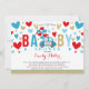 Conduite Par Valentine Baby shower Chéri Red Blue Invitation. Tous les modèles sont © PIXEL PERFECTION PARTY LTD
