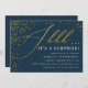 Navy & Gold Confetti Script Surprise Party Invitations. Chut... C'est une surprise ! Célébrez votre fête d'anniversaire surprise avec ces invitations élégantes avec des confettis de feuille d'or et un script contre un arrière - plan bleu marine. Vos détails apparaissent dans la typographie serif élégante.
