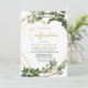 Invitation de confirmation élégante. Ce design branché est doté d'éléments botaniques de verdure aquarelle et d'un cadre doré géométrique.