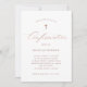Ce design simple et élégant présente une calligraphie rose gold fausse élégante et un texte moderne sur un fond blanc croustillant. Une croix assortie rend cela parfait pour votre célébration de confirmation religieuse. Un style neutre qui convient parfaitement à une fille ou un garçon.