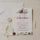 Cette invitation à la calligraphie florale d'été rustique est parfaite pour un simple événement religieux. Le design est composé de fleurs d'aquarelle bordeaux, roses et rousses avec des feuilles verts dans un arrière - plan verni brun.