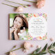 Invitations personnalisées abordables pour le sacrement chrétien catholique de la confirmation. Personnalisez le modèle avec vos coordonnées et votre photo. Ce joli design botanique présente un cadre aquarelle de fleurs de pêche et de lavande avec un arrière - plan rayé roux à l'envers. Utilisez les outils de conception pour télécharger votre photo et modifier les polices de texte et les couleurs pour créer une élégante invitation à la floraison printanière.