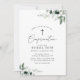 Une élégante invitation personnalisée modèle avec aquarelle verte feuillage. Le texte, la photo et les couleurs peuvent être modifiés.