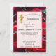 Agate rouge personnalisable avec parties scintillant verte simulée et croix d'or Confirmation Invitation.